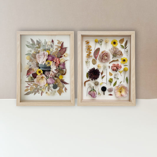 Our custom framed art features elegant, modern frames showcasing your pressed or dried wedding flowers