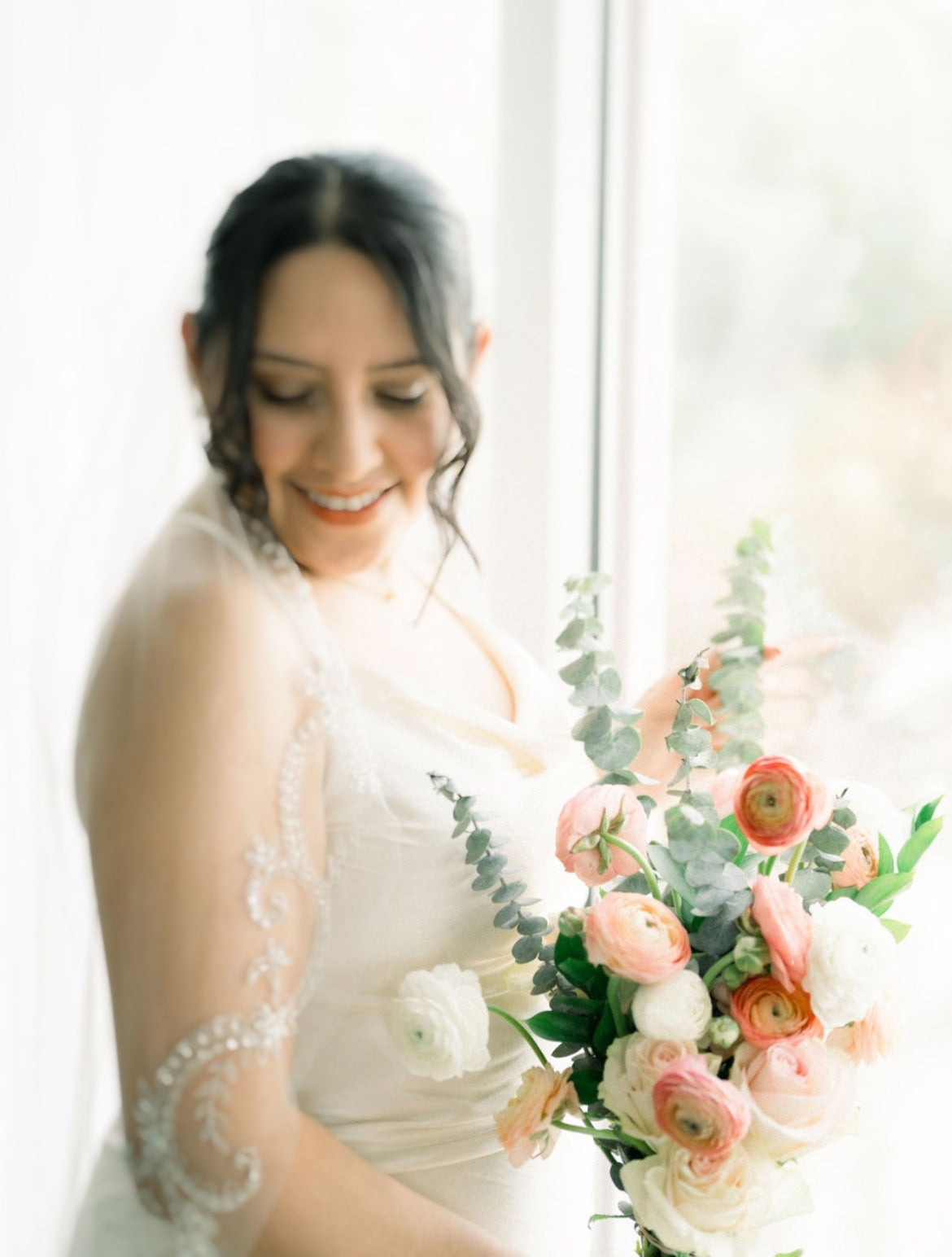 For her bouquet, this Bride picked a stunning mix of white, pink, and coral Ranunculus mixed with champagne Roses and Eucalyptus. These perfect flowers were meticulously Dried in Silica Gel and honored forever in Shadow Boxes.