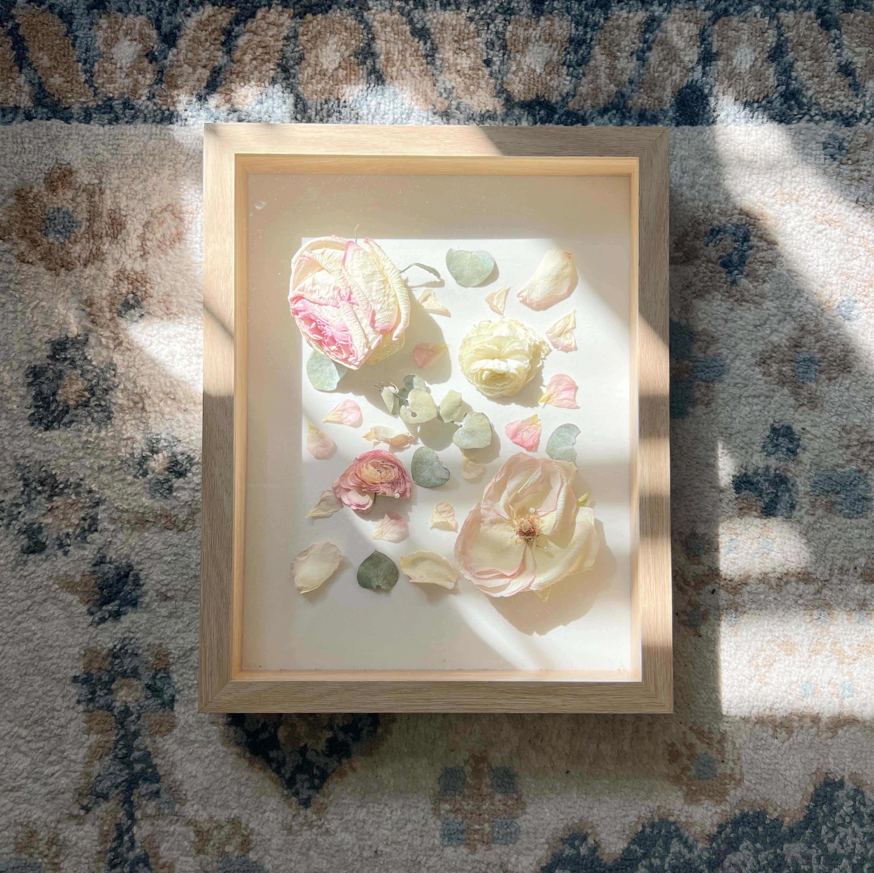 We offer four options to display your florals: Frames, Shadow Boxes, Resin Trays, & Resin Table Trays