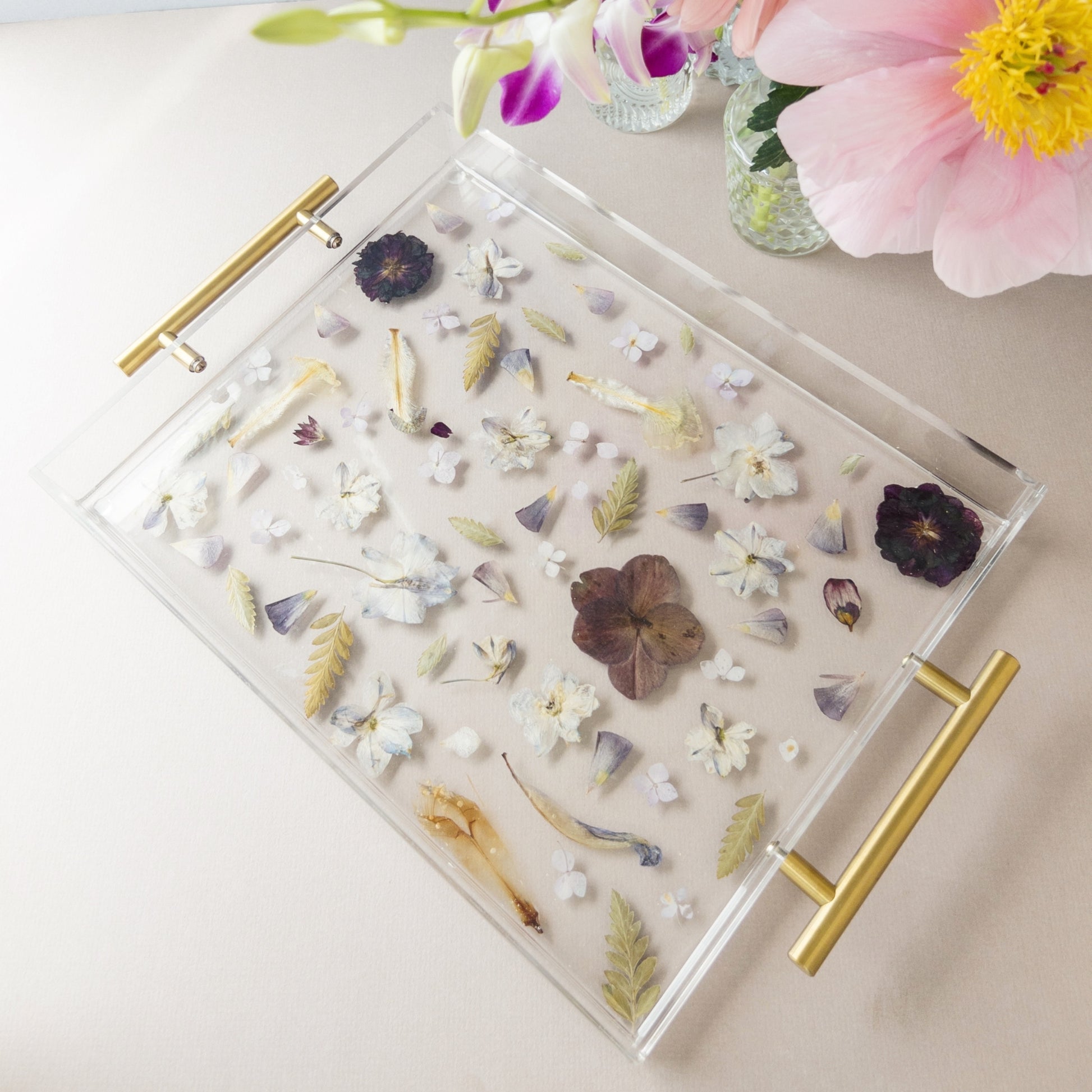 Pressed and preserved in resin, this tray is more than a functional object, it is a botanical altar to the women who shape us, to the gardens that teach us, and to the stories that bloom in our hearts across time. Let it bring warmth and remembrance into your home.