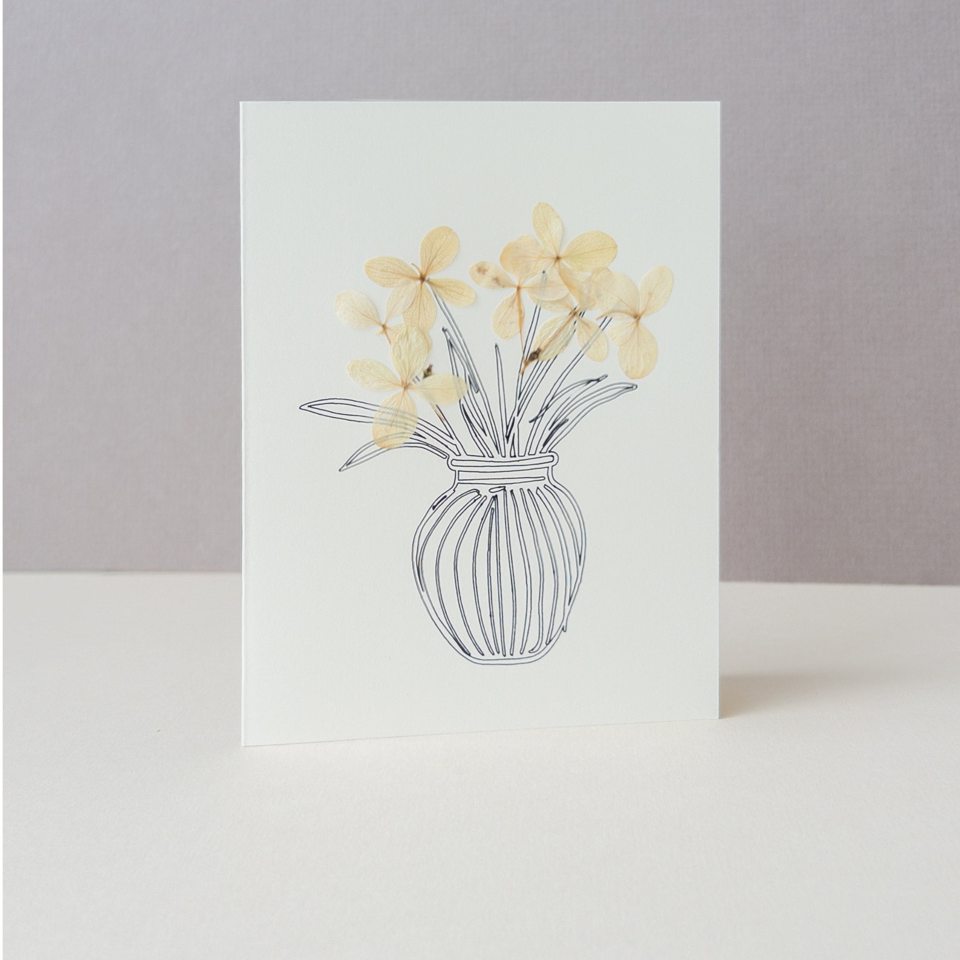 Celebrate nature’s quiet beauty with our Pressed Flower Vase Card. Each 7x5 card is adorned with genuine pressed petals arranged delicately over a minimalist vase illustration, creating a timeless keepsake that feels both modern and poetic.