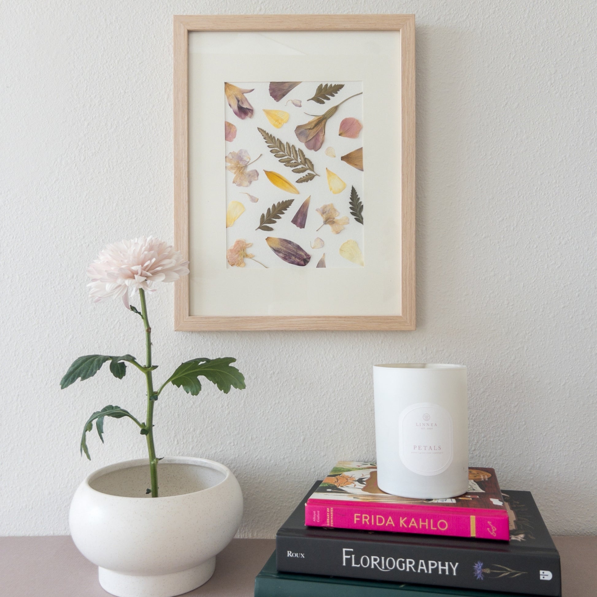 Each flower was gently pressed and placed with loving care, preserving not just its form, but its emotion. Handmade, one-of-a-kind creation